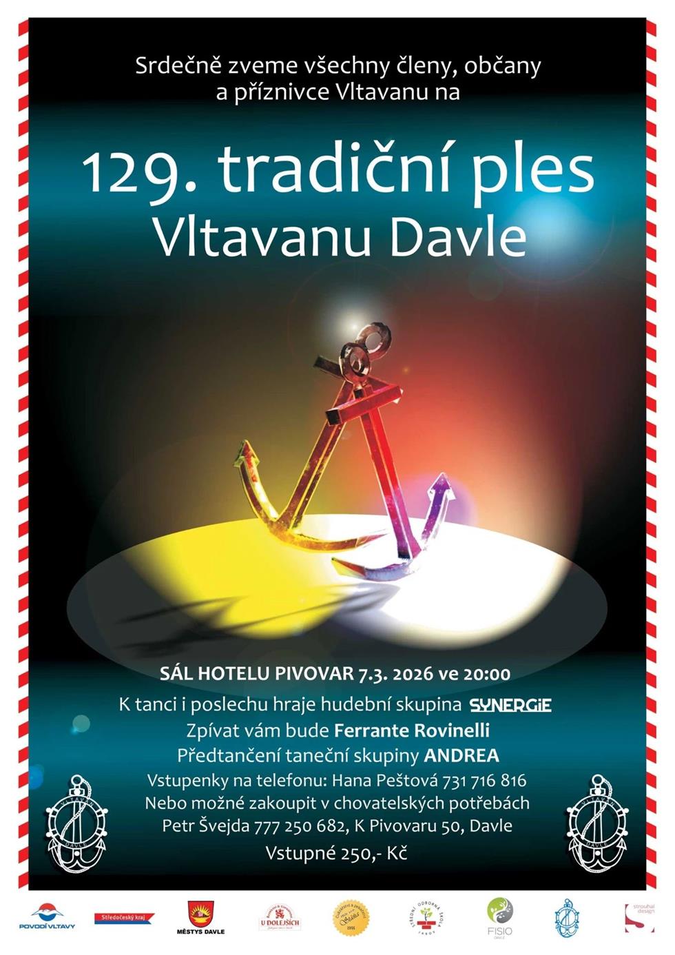 K tanci a poslechu zahraje hudební skupina Synergie. Zazpívá Ferrante Rovinelli a předtančení předvede taneční skupiny ANDREA.